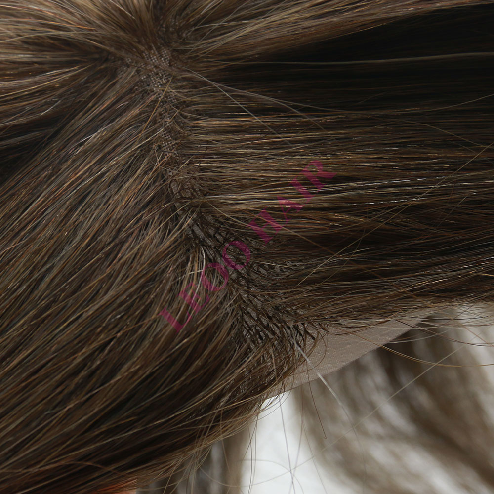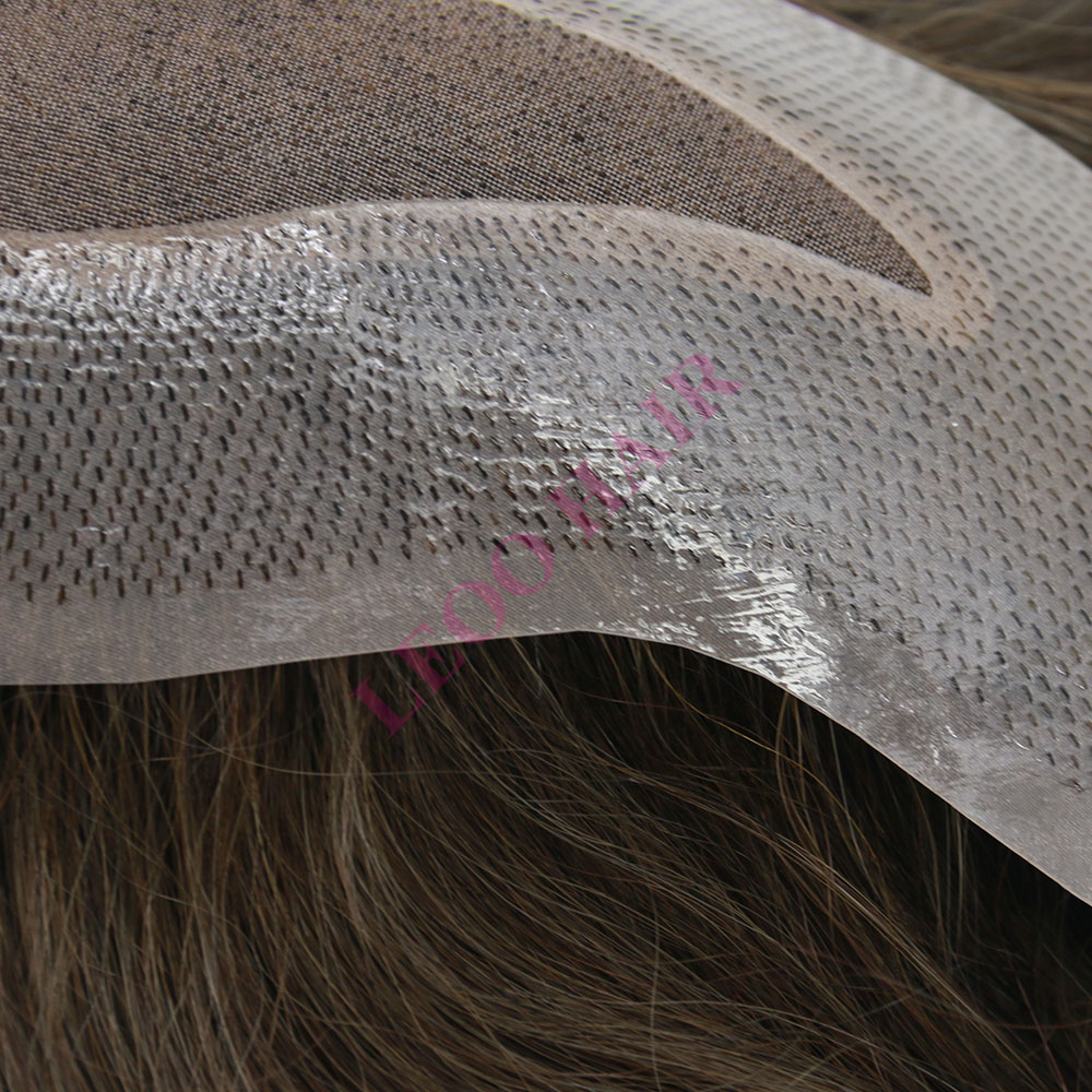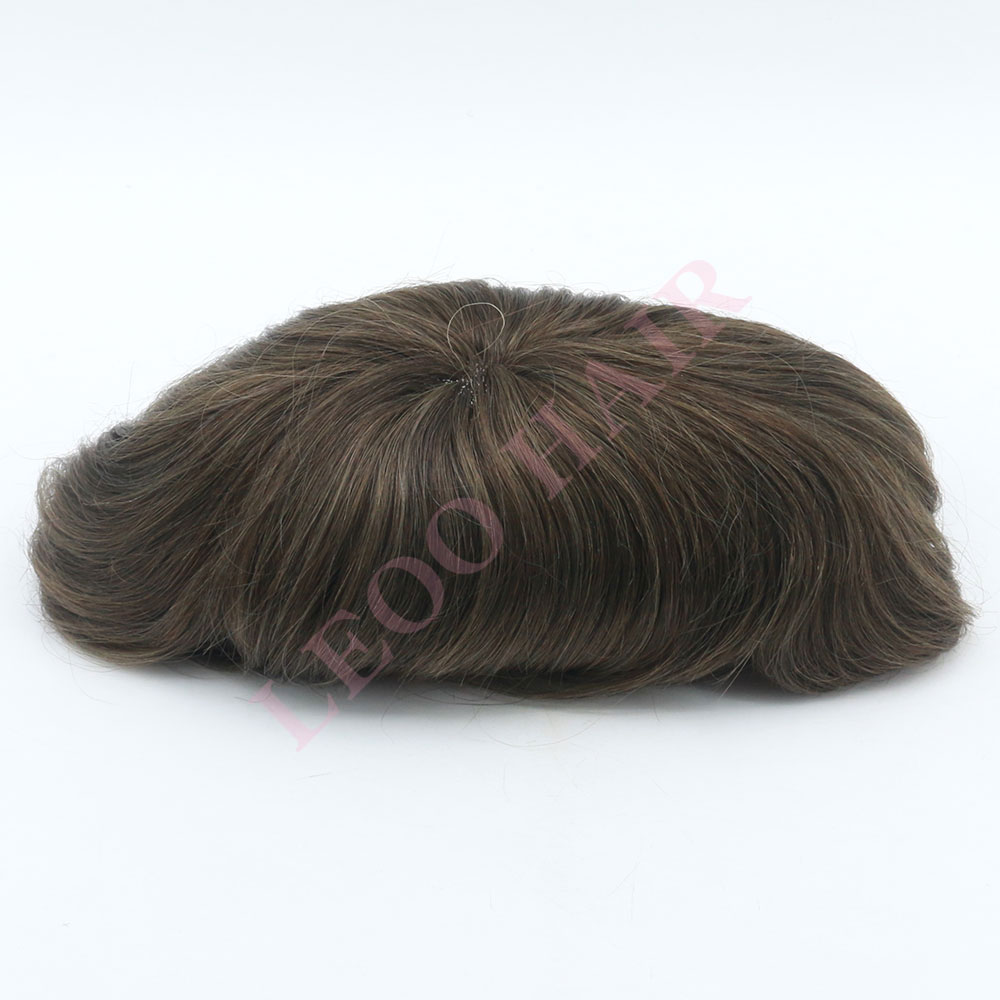 BASE: Mono lace with NPU around customized front hairpiece for men. Mono lace is breathable and durable. The PU around makes the hairpiece easy to tape and clean.