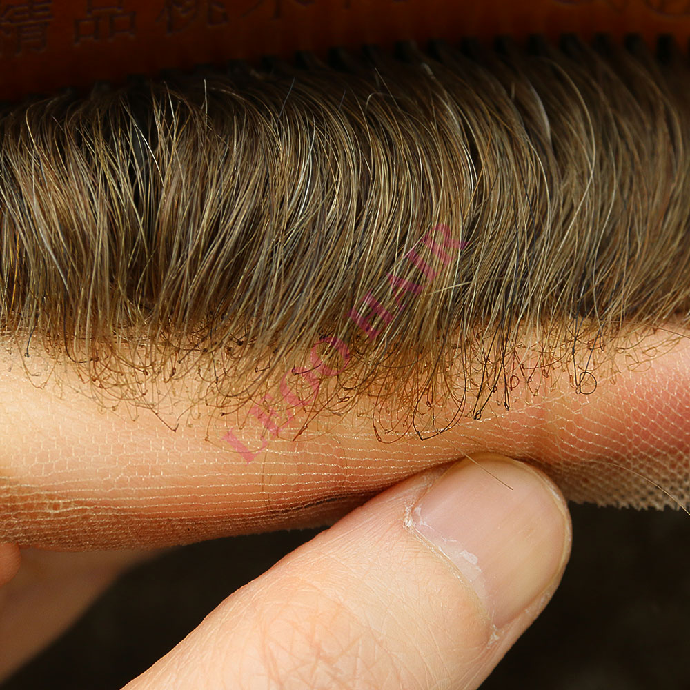 The toupee features a full Swiss lace base that ensures breathability and invisibility. We can custom-make the base size to your specifications. The hand-knotting technique secures the hair onto the lace, minimizing shedding. The front hairline is gently bleached for a more natural and undetectable appearance.