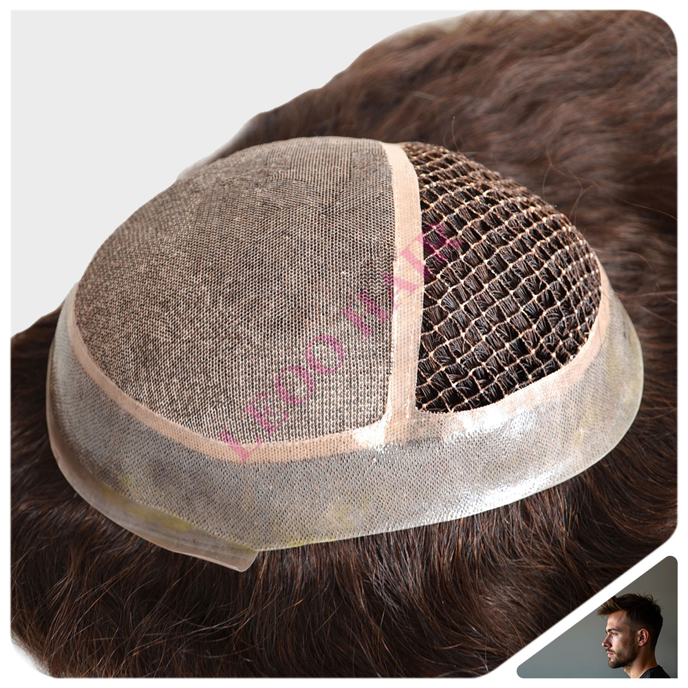 LCMT56 Custom Men Toupee Front Silk Back Fishnet with PU Around