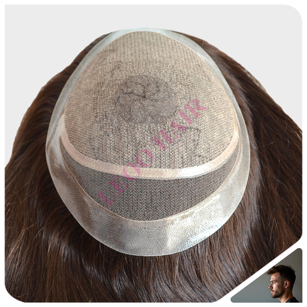 LCMT58 Custom Men Toupee Front Silk, Back Swiss Lace with PU around