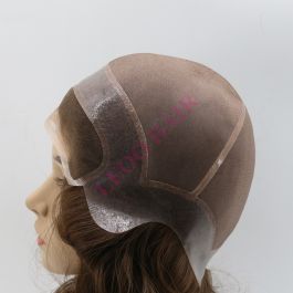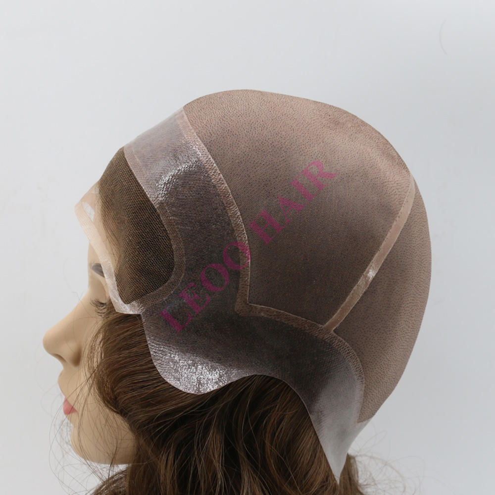 BASE: Custom women's wig front and top Swiss lace + top Mono + PU around. Breathable and invisible lace. The PU looks undetectable and fitable.