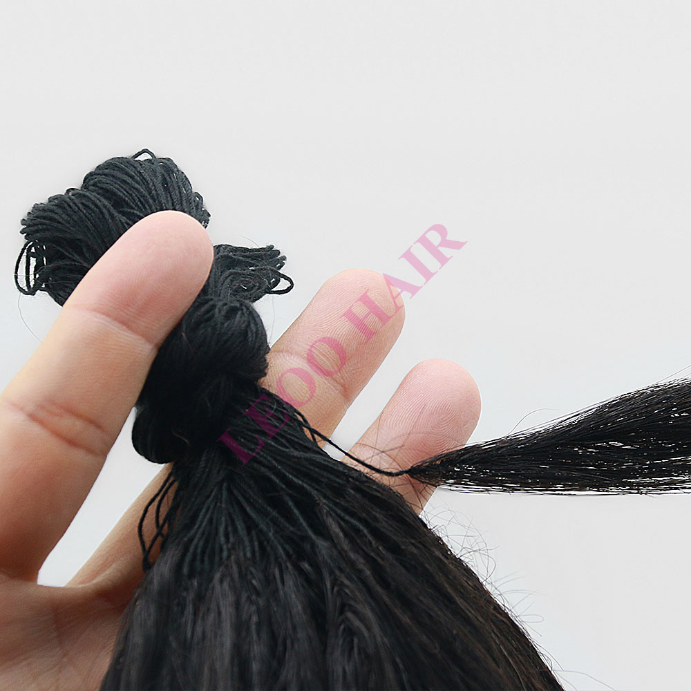 - Leoo Hair feather line extension hair are made of real human hair, silk and soft like your own hair no tangle. Human hair extensions can be cut,washed, dyed into darker colors and possible to be straightened and curled just like your own hair. When you perm or straighten it, please note to control the temperature under 180℃.
