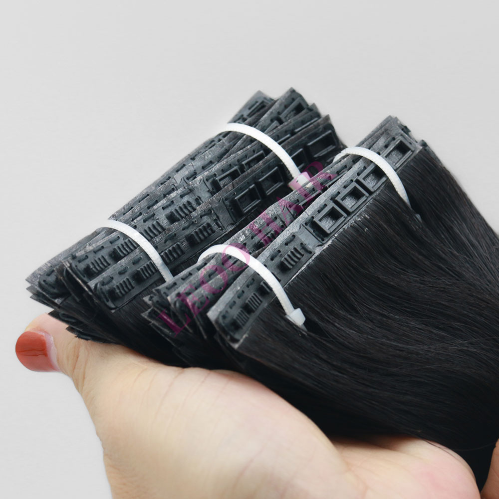 - Human hair extensions with fastener were skin sealed,which is more durable. Skin weft fasten extension hair are easy and quick to wear and take off. It's one of the hair extension methods, no glue, no bonding, no heat, well protecting your scalp and hair.