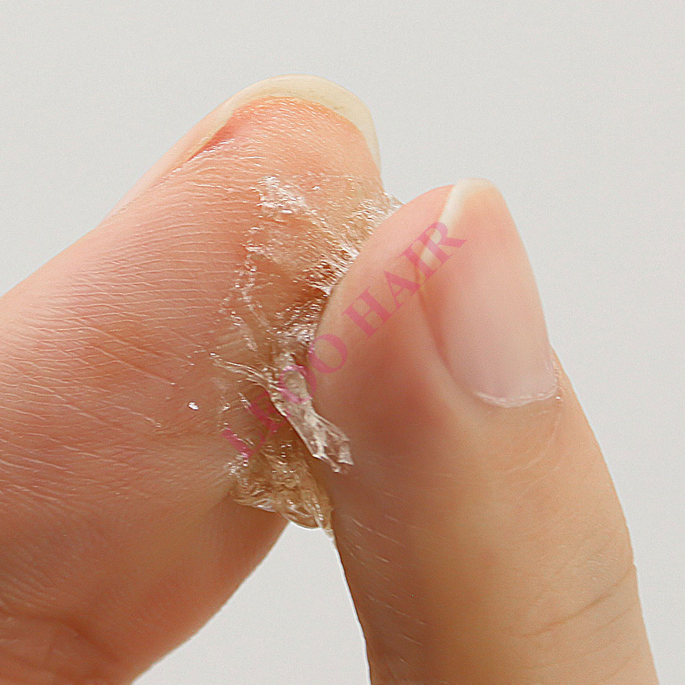 - FEATURES: Sensi-Tak is a very low residue tape and a cleanest tape to remove. It's popular for use on poly units due to its easy cleanup. It does have some shine. So it’s not recommended for lace units. The liner is red, but tape is clear.
